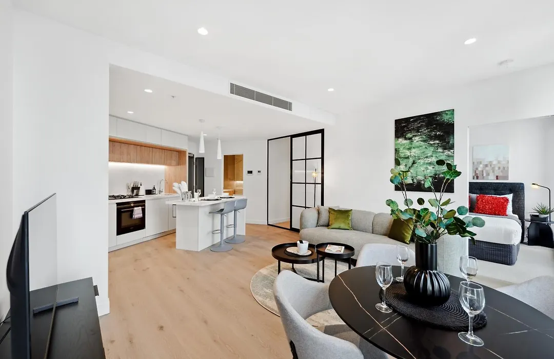 Brand New Luxe Living In Cbd 2 Bedroom With Pool Sauna Gym apartment offers a seating area and a fully equipped kitchen, as well as comforts like an air conditioner. The accommodation features a bathroom with a hairdryer and bath sheets. Furthermore, a walk-in shower, a separate toilet, and a washing machine is available.
